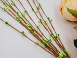 Пучок штучної верби з ніжними салатовими бруньками — елегантний декор для весняних і великодніх композицій. Реалістичні коричневі стебла та яскраві бруньки створюють свіжий акцент у букетах, вінках, кошиках і настільних оформленнях. Гнучкі гілочки на металевому стержні легко формувати та фіксувати.