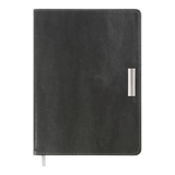 Гнучка обкладинка щотижневика SALERNO виконана з гладкої штучної шкіри. Унікальним елементом дизайну є металевий декор - шильда на лицьовій стороні обкладинки. Гармонійно доповнює дизайн сліпе тиснення року на корінці, тонований зріз внутрішнього блоку в колір обкладинки та тонований в колір обкладинки зріз внутрішнього блоку.