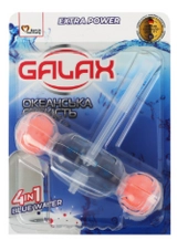 Підвісний туалетний блок Galax PowerClean забезпечує комплексний догляд за унітазом у форматі 4-в-1: очищає поверхню під час змиву, надає свіжий аромат, допомагає запобігати нальоту та забарвлює воду в синій колір. Аромат “Океанська свіжість” підтримує приємний запах між змивами.